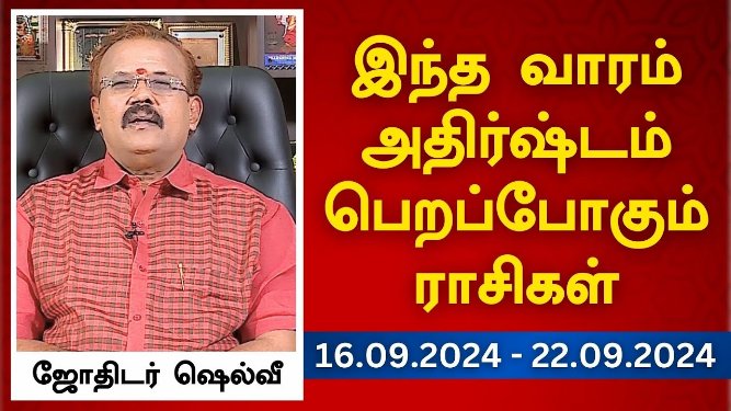 Rasi Palan -Jothidam Jodhida Neeram – (16.09.2024 To 22.09.2024) Vendhar tv Show September 15, 2024 No Comments Player – 1 Player – 2 Learn more →