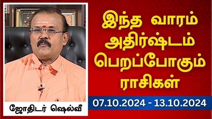 Rasi Palan -Jothidam Jodhida Neeram 07 to 13-10-2024 Vendhar tv Show October 7, 2024 No Comments Player – 1 Learn more →